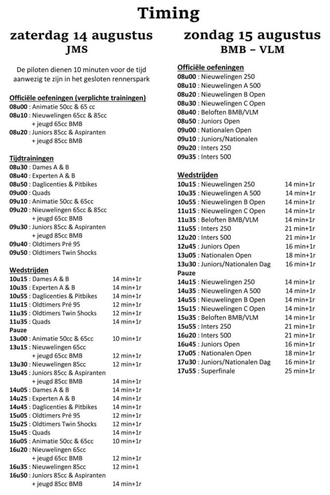 Door de drukke tweedaagse is er wat gesleuteld aan de timing. De oldtimers rijden op zaterdag het volgende schema: